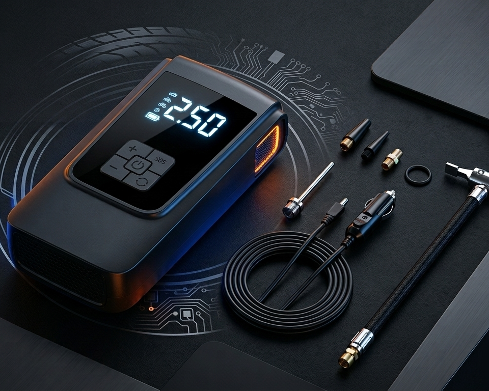 RoadLy Air Pro to inteligentna technologia zamknięta w kompaktowej obudowie, która eliminuje problem zgadywania właściwego ciśnienia. Po podłączeniu wzmocnionego wężyka do wentyla, urządzenie natychmiast wykonuje precyzyjny odczyt i wyświetla go na jasnym ekranie LCD. Twoim jedynym zadaniem jest wybranie odpowiedniego trybu lub ustawienie docelowej wartości – resztą zajmuje się zintegrowany procesor. Kompresor błyskawicznie wtłacza powietrze, stale monitorując parametry w czasie rzeczywistym, i automatycznie przerywa pracę dokładnie w momencie osiągnięcia ideału. Dzięki temu masz pewność, że Twoje opony są napompowane z chirurgiczną precyzją, bez ryzyka ich przepełnienia czy uszkodzenia, a Ty możesz ruszać w drogę bez brudzenia rąk i szukania stacji benzynowej.